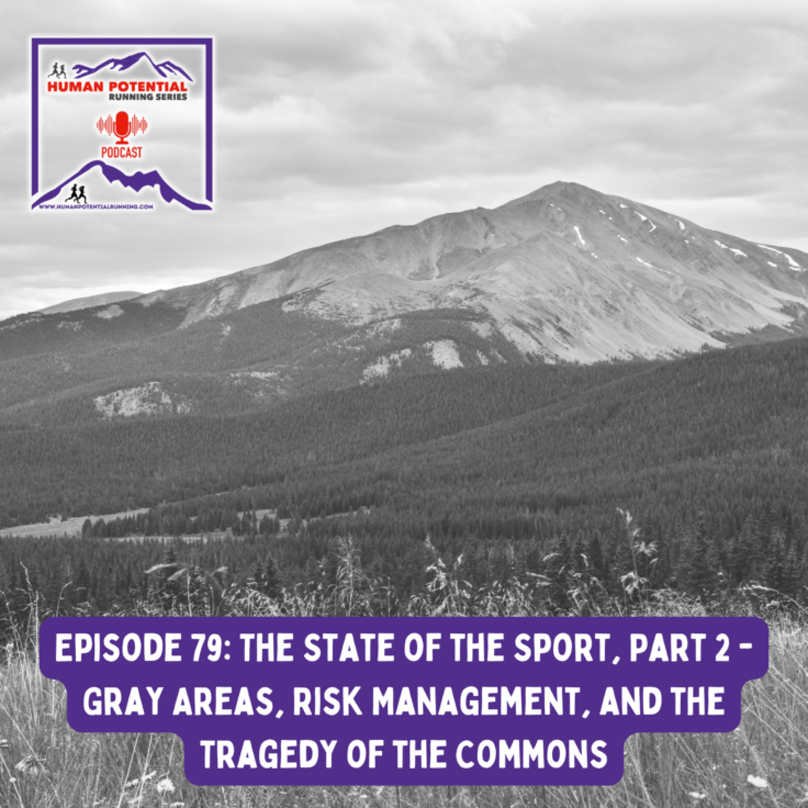 Take a run with The Human Potential Running Series podcast. Episode 79 is Part 2 of a 3 part series on The State of Ultrarunning. In this part, John and guests Gordon Harvey, Mike Gamp, and Megan Storms tackle the increasingly complex world of land management, legal liability, and the “tragedy of the commons” currently facing ultrarunning.