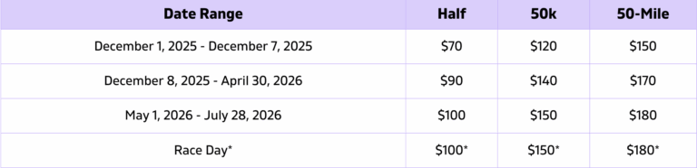 2026 REGISTRATION IS NOW OPEN!*Any registration purchased after Monday, July 20, 2026 is not guaranteed a race shirt or finisher’s award. After this date, these items will only be provided as available at the finish line.